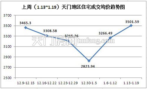 上周(1.13~1.19)天门地区住宅成交均价趋势图