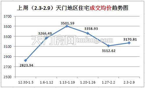 上周(2.3-2.9)天门地区住宅成交均价趋势图