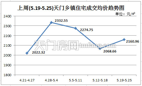 1、上周(5.19-5.25) )天门乡镇住宅成交均价趋势图