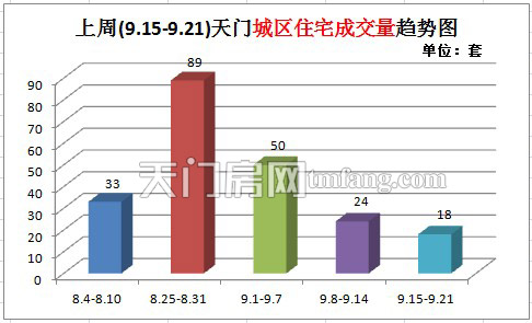 1、上周(9.15-9.21)天门城区住宅成交量趋势图