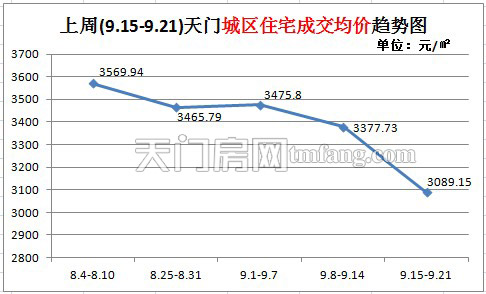 2、上周(9.15-9.21) 天门城区住宅成交均价趋势图