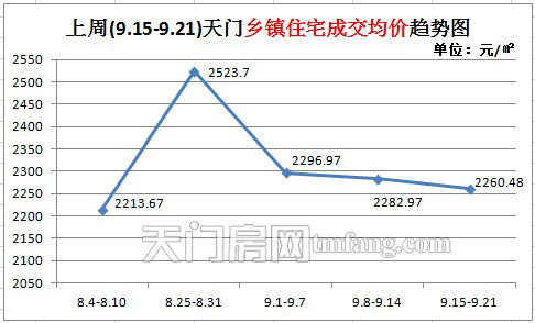 2、 上周(9.15-9.21)天门乡镇住宅成交均价趋势图
