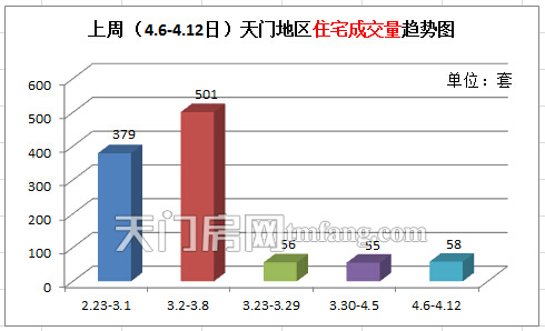 图一:上周(4.6-4.12日)天门地区商品房成交量趋势图