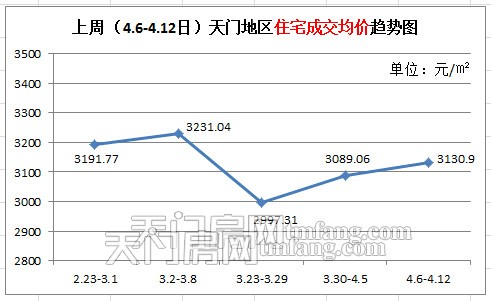 图三:上周(4.6-4.12日)天门地区住宅成交均价趋势图