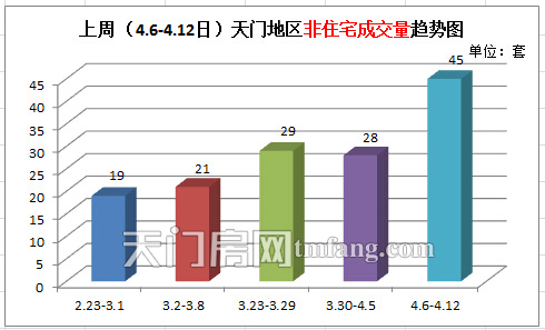 图五:上周(4.6-4.12日)天门地区非住宅成交量趋势图