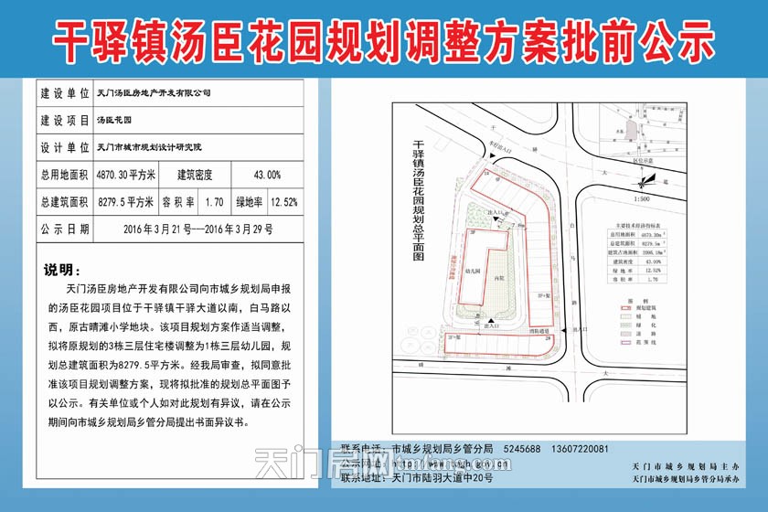 干驿镇汤臣花园规划调整方案批前公示