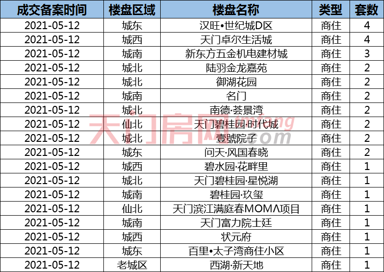 2021年05月12天门市房产交易行情播报!