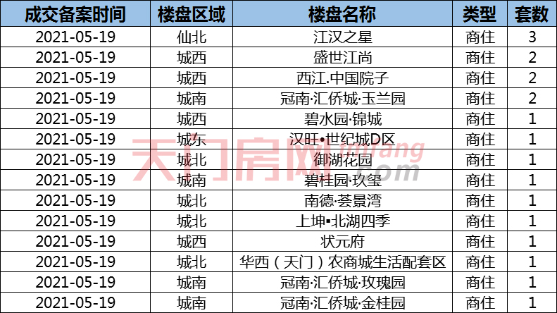 2021年05月19天门市房产交易行情播报!