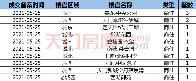 2021年05月25天门市房产交易行情播报!