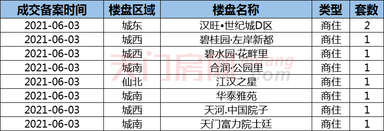 2021年06月03天门市房产交易行情播报!