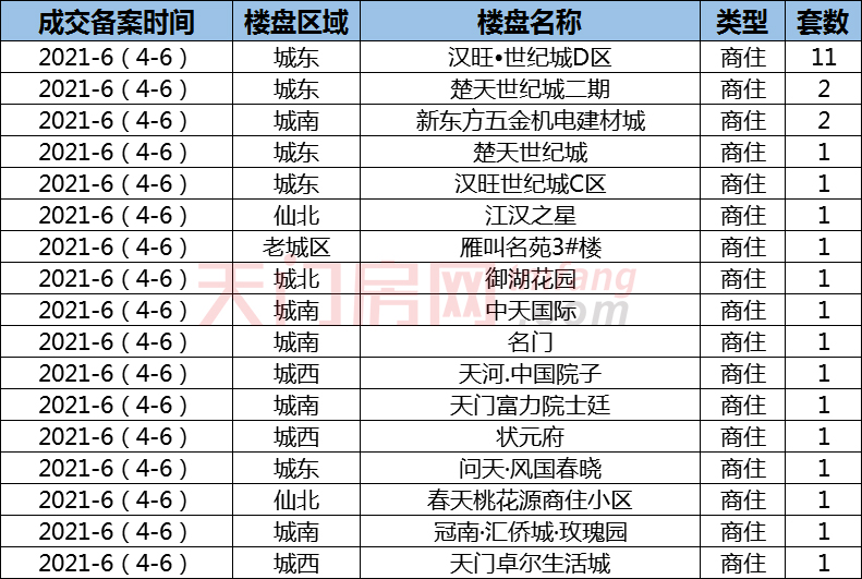 2021年06月04-06天门市房产交易行情播报!