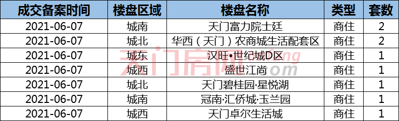 备注:此数据来源于数据中心,是天门在售各大楼盘成交备案数据,部分数据有延迟,仅供参考,如有疑虑可添加房网小编微信(tmfang005)具体咨询或修改!