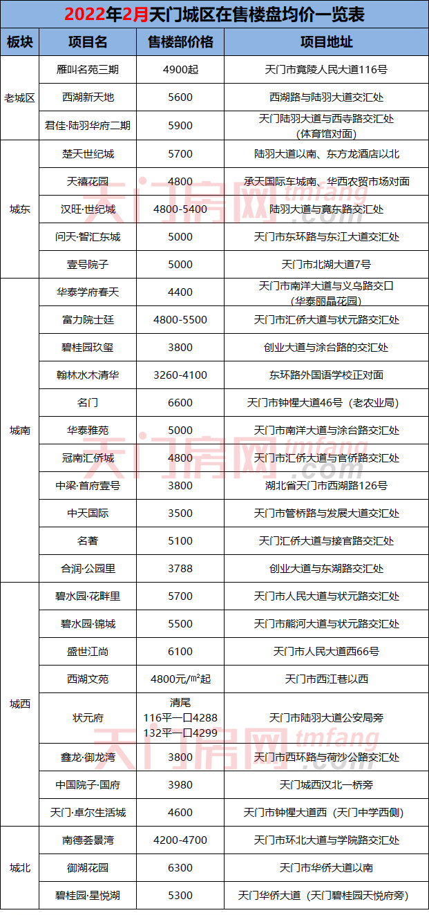 注:以上数据源于天门房网整理所得,仅供参考,一切以售楼部价格为准!