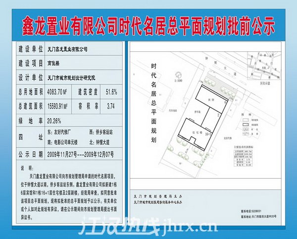 鑫龙置业有限公司时代名居总平面规划方案批前公示