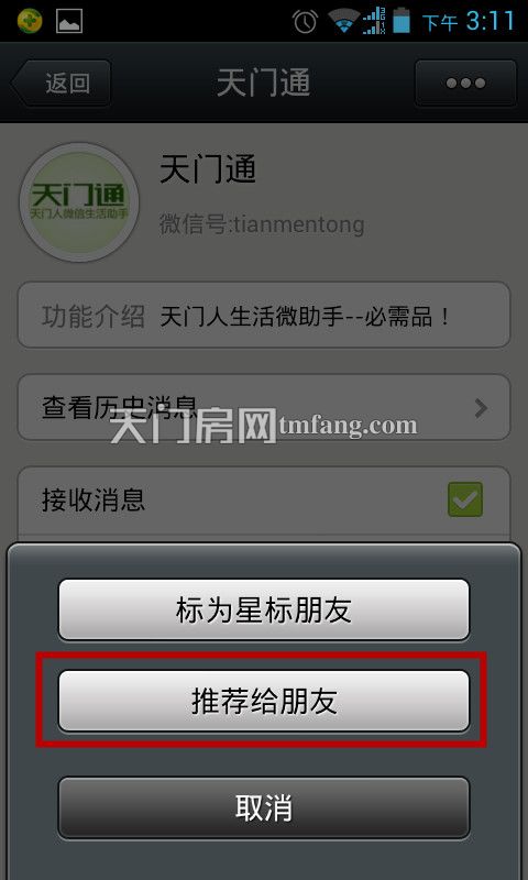 --------------------如何向你的微信好友推荐天门通微信---------------------------