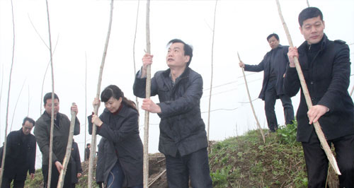 7日,市发改委驻横林镇“三万”工作组与该镇机关干部一起在史岭村植树。为助力横林镇绿化建设,市发改委“三万”工作组出资2万元为该镇沙沟、史岭等8个驻点村购买树苗400余棵,并联合镇机关干部开展义务植树活动。