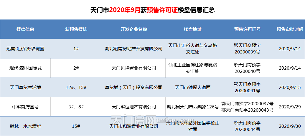 因此,小编整理了天门市2020年9月《商品房预售许可证》新鲜出炉的项目,同时提醒购房群众,未取得《商品房预售许可证》的商品房不要购买,以免造成不必要的损失。