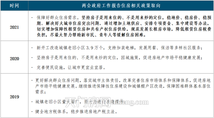 2021年两会提出“房住不炒”总基调不变,稳地价、稳房价、稳预期,在报告中得到重申,说明楼市调控的目标依旧是“维稳”,既要遏制大涨,又要防范大跌。