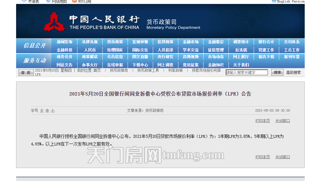 5月20日上午,央行披露最新一期贷款市场报价利率(LPR),1年期LPR利率为3.85%,5年期LPR利率为4.65%。
