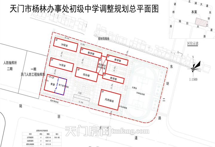 该项目总建筑面积为40657.62平方米,计容总建筑面积为39860.00平方米,容积率为0.94,选址位于天门陆羽大道与东环二路交汇处。