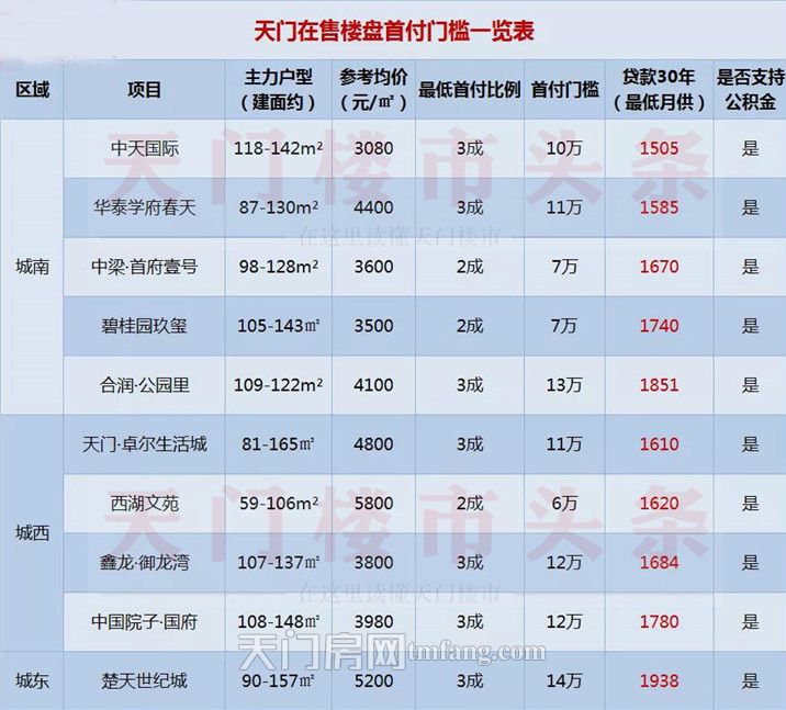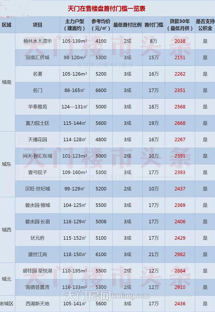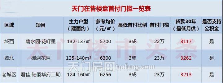 针对此,头条君为大家整理出了一些目前天门在售楼盘的购房月供情况,给大家提供一个参考值。