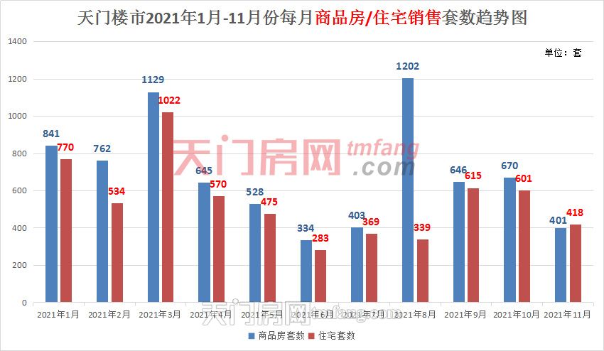 2021年1-11月新建商品房销售7561套,销售面积89.47万平方米,同比增长62.08%;其中,新建商品住房销售5996套,销售面积72.78万平方米,同比增长39.35%。存量房成交1483套,成交面积19.09万平方米,同比增长59.75%;其中,存量住房成交1445套,成交面积18万平方米,同比增长52.93%。