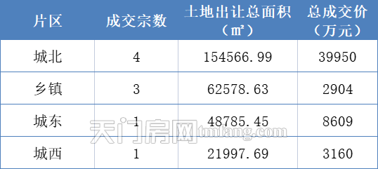 从单宗成交情况看,城北片区1宗地成交价1.5亿,位于天门市竟陵办事处华侨大道交6号路东南角。
