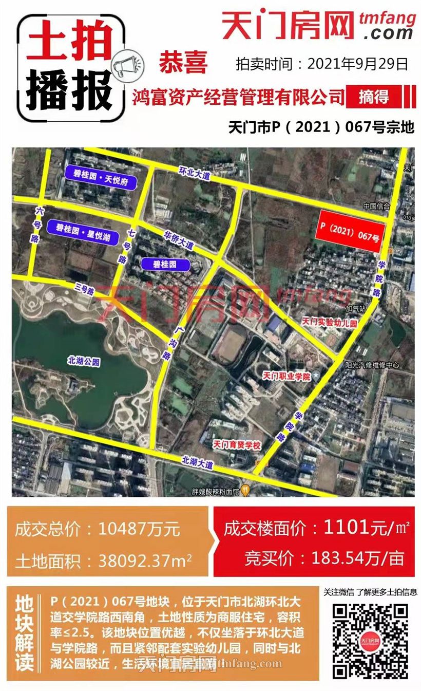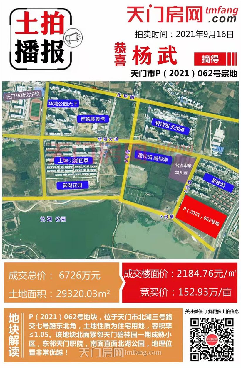 P(2021)062号地块,案名楚天墅苑,也是楚天尚城、楚天世纪城在天门的第三个项目。