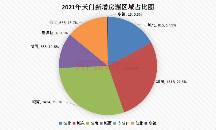 各区域新增房源:城北815套,城东1318套,城南1414套,城西553套,老城区4套,仙北653套,乡镇16套。