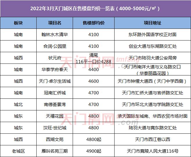 兰兰专门整理了一份天门新房价格区间表,里面包含城区30+在售楼盘的3月价格,供大家在天门置业的时候参考,快速了解真实的市场房价。