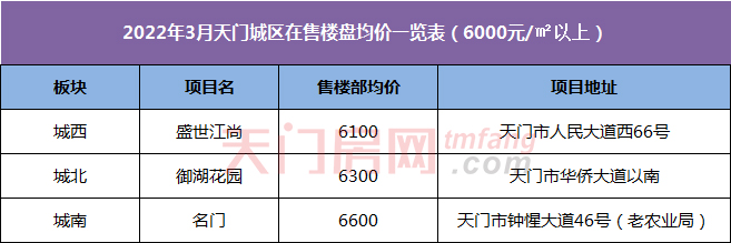 目前,天门房价能达到6000元/㎡以上的楼盘不多,能卖到这个价位的楼盘,无论是在产品还是地段上,都可以说是天门楼市名列前茅的。