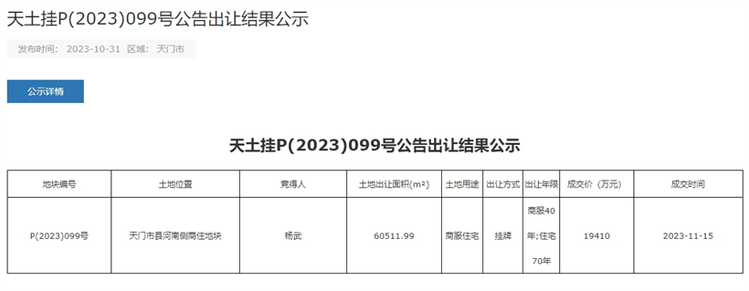11月15日备受天门人关注的二宗优质商服住宅用地—P(2023)099地块、P(2023)100地块迎来竞拍!
