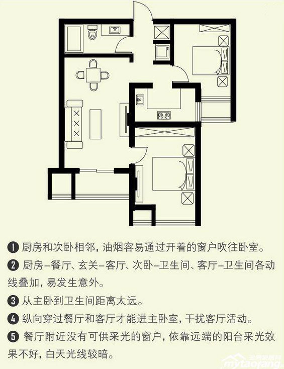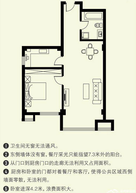 - 厨卫采光较差